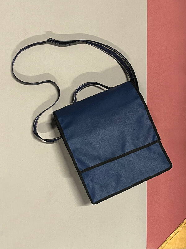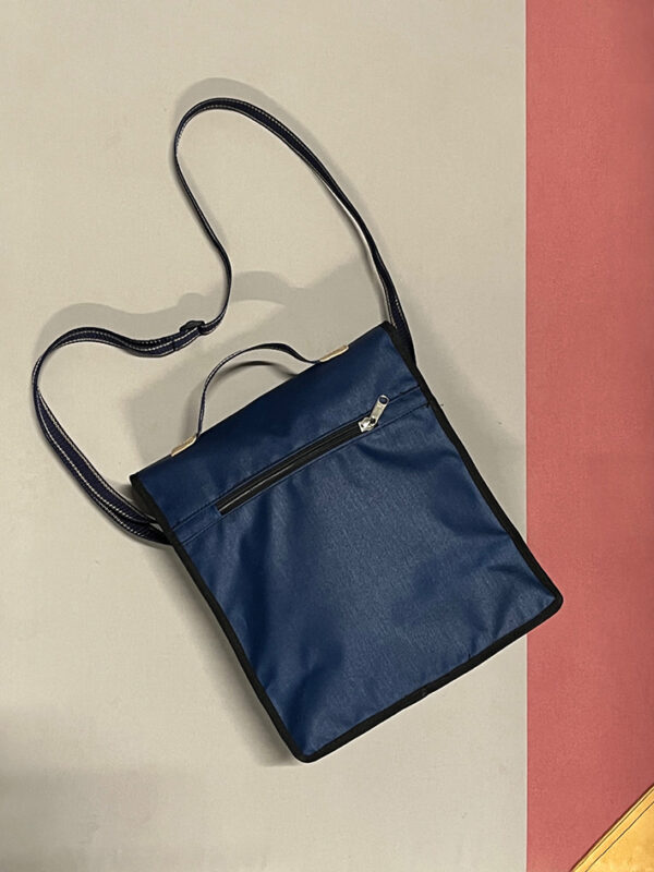 Casual shoulderbag with a cool shiny appearence. Zipper at the back.