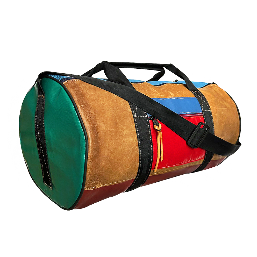 Een coole kleurrijke sporttas met stevig leer, een handige dubbele rits en een zijvak.