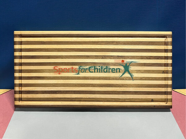 Een zeer mooi vervaardigde massief hardhouten snij- en serveerplank.