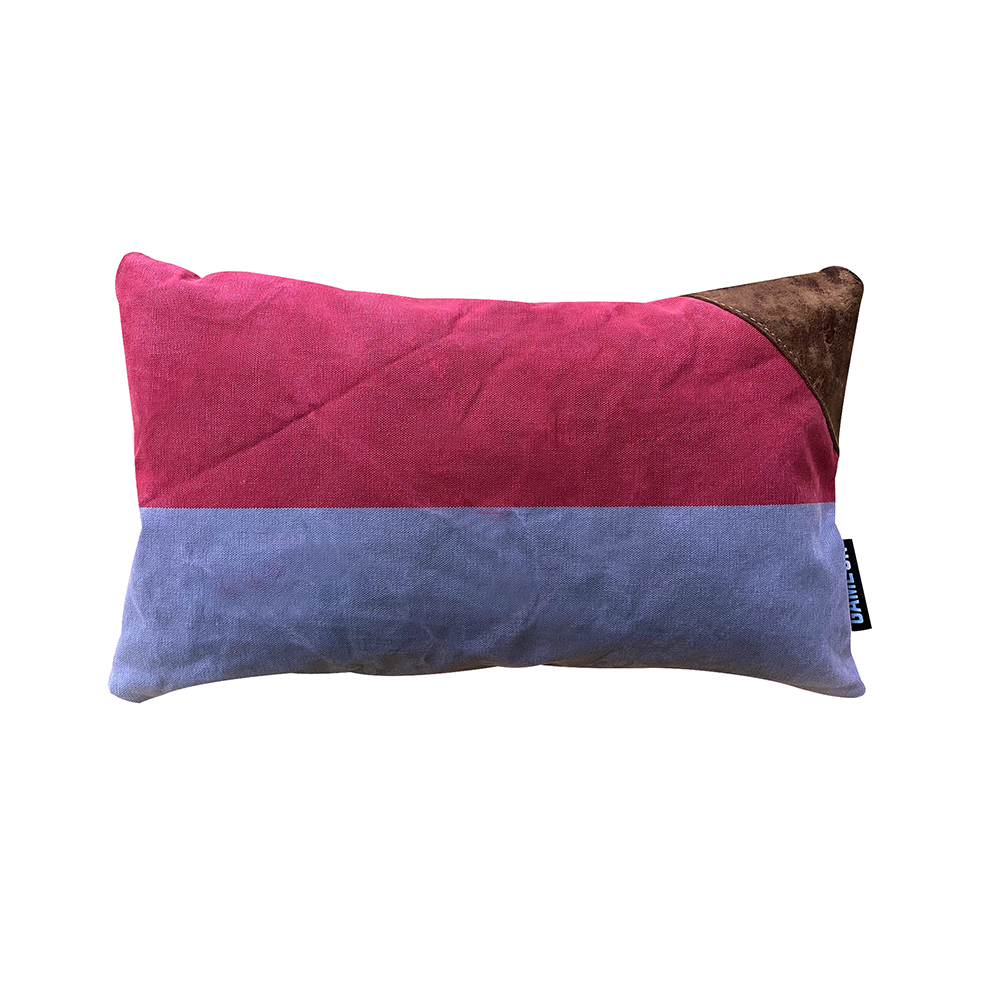Dit smalle model kussen is verkrijgbaar in rood, grijs, blauw, groen of combinaties van deze kleuren.