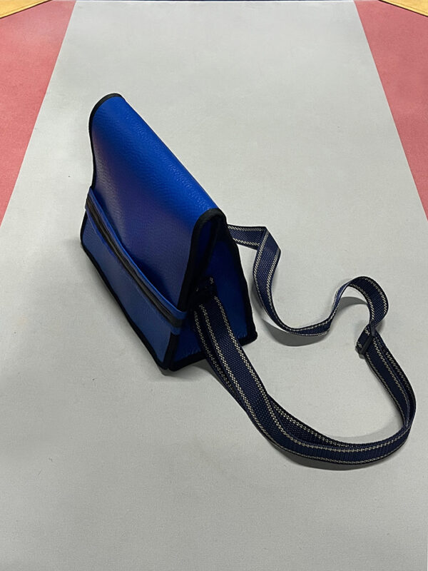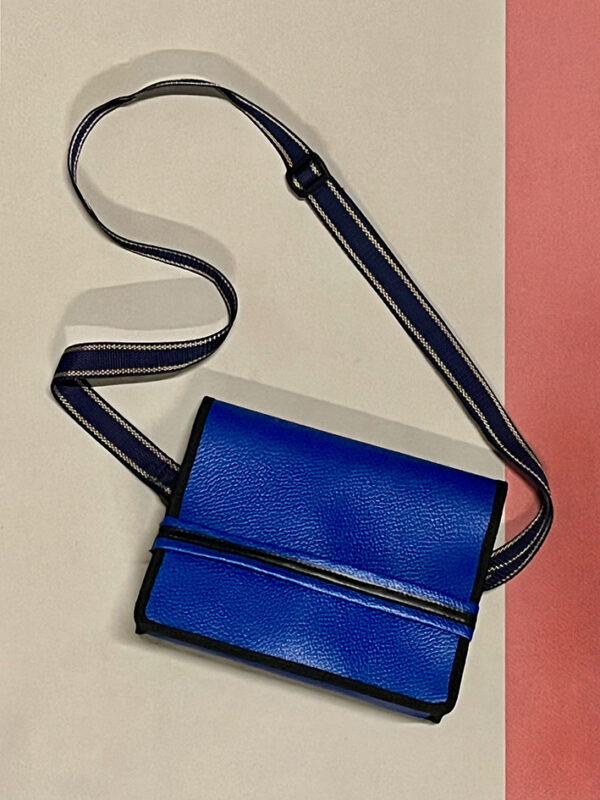 Zeer aantrekkelijke blauwe schoudertas,’casual chique’.