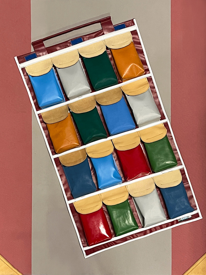 Kleurrijke opbergtas, ideaal voor sportteams of gewoon thuis. Bewaar hier sleutels, telefoons en andere kleine spullen.